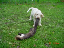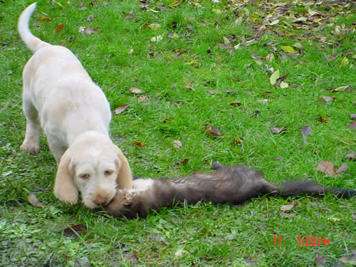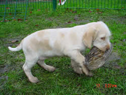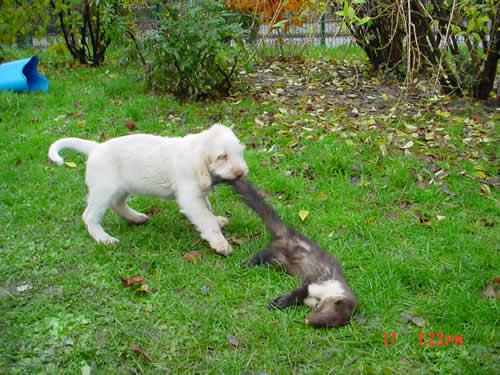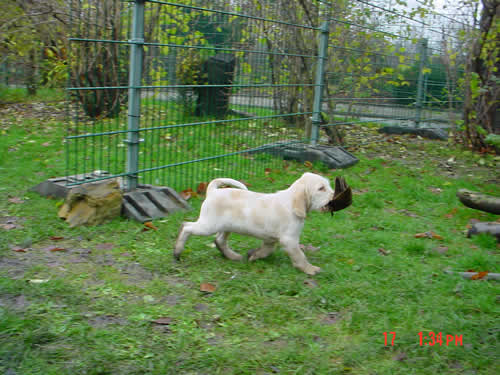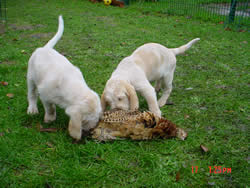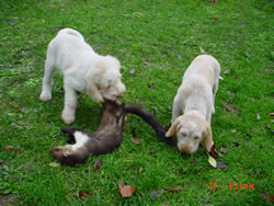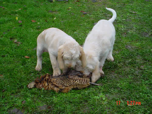 Bei der jagdlichen Prägung zeigen sich "Alfine" und "(klein)Amsel" sehr interessiert, als Nächstes steht ein erster Spaziergang im Revier an.