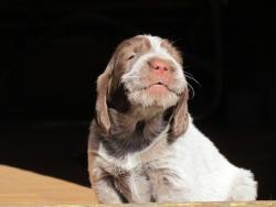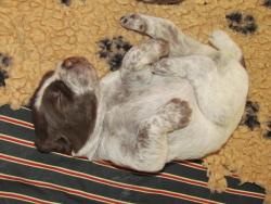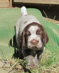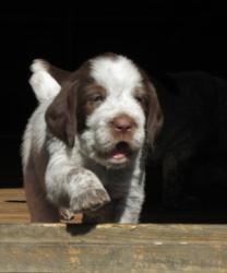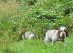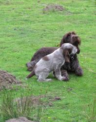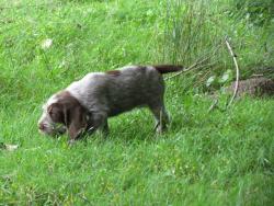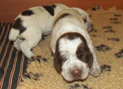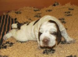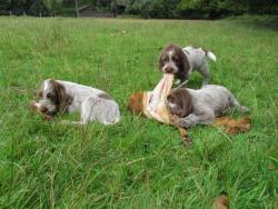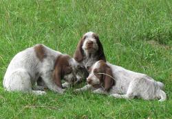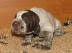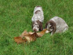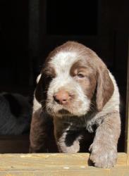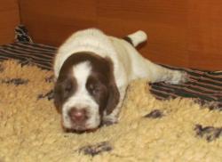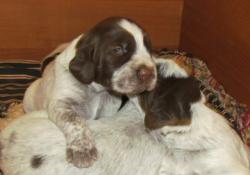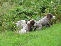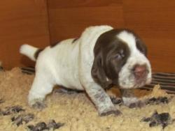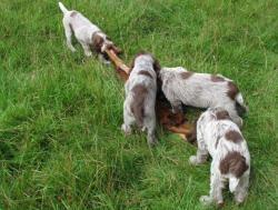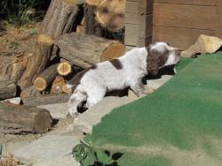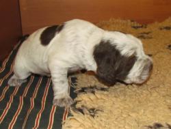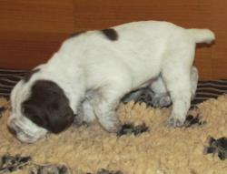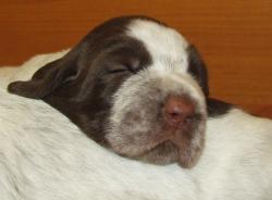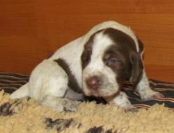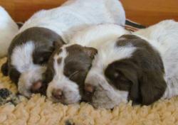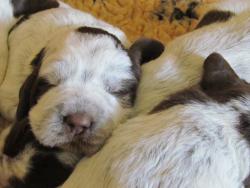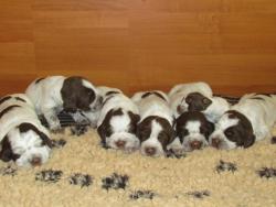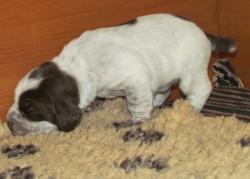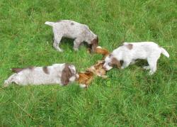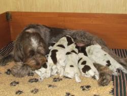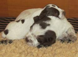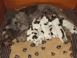 Pebbles und ihre Welpen im Alter von 4 Wochen (28 Tagen).