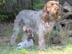 Pebbles mit ihren 7 Welpen kurz nach der Geburt