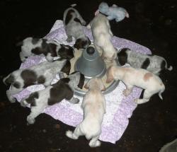 Mocca mit ihren 8 Welpen drei Tage nach der Geburt