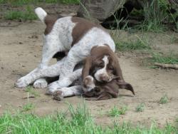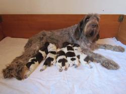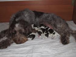 Pebbles und ihre 5 Welpen direkt nach der Geburt