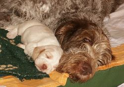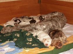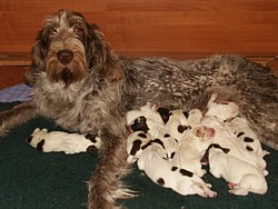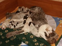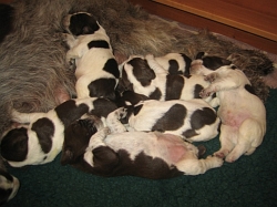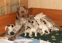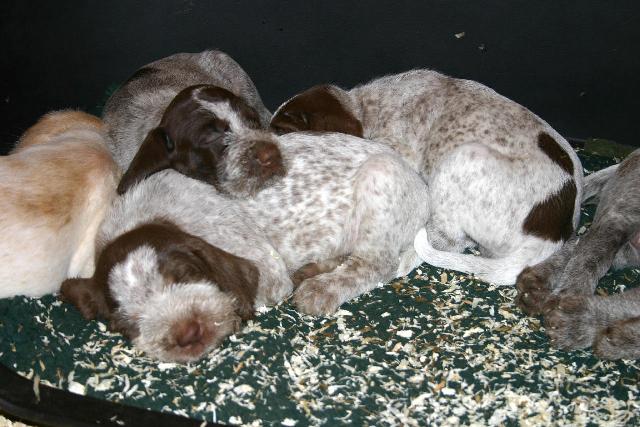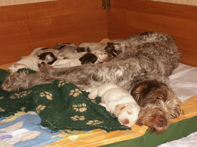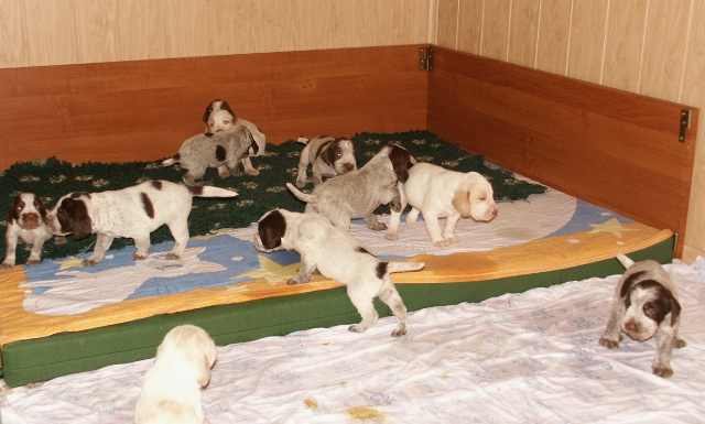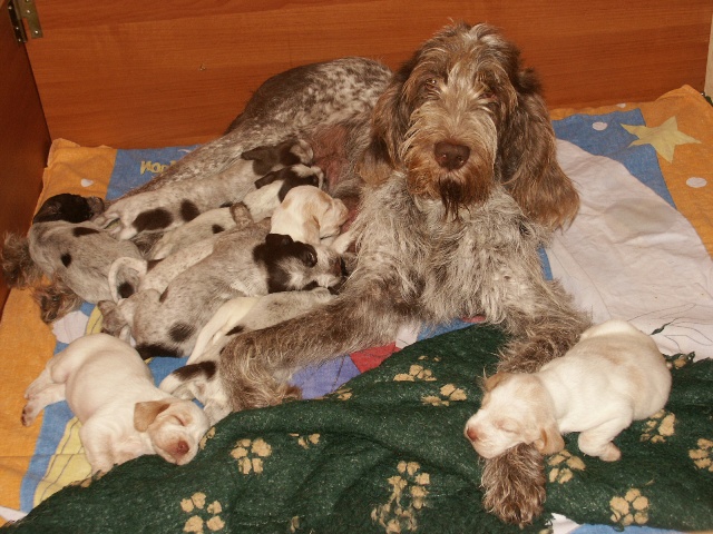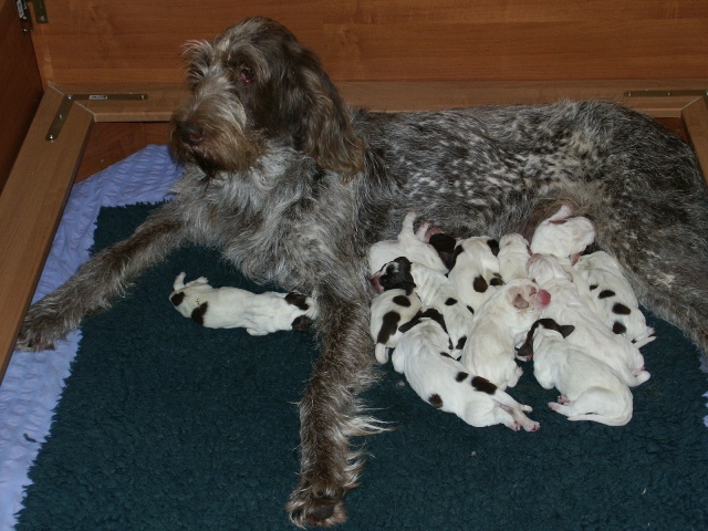 4 braunschimmel Rüden, 2 weiß-orange Rüden, 5 braunschimmel Hündinnen, 2 weiß-orange Hündinnen