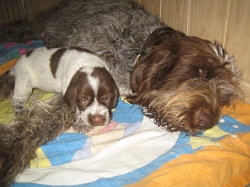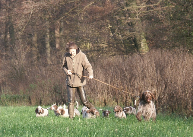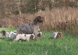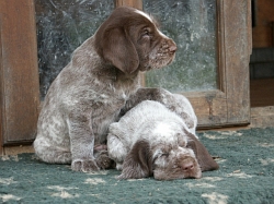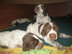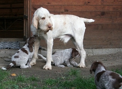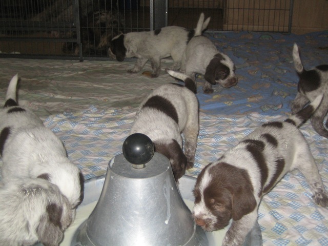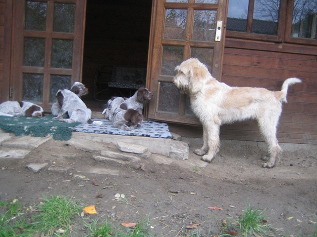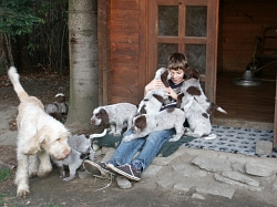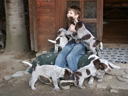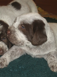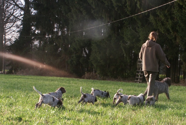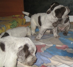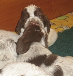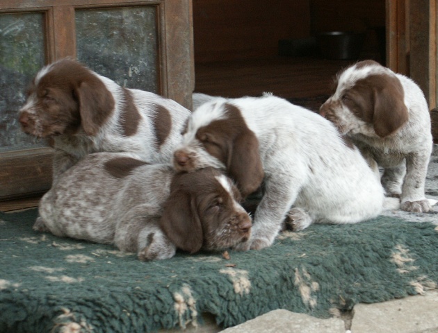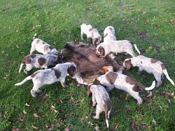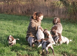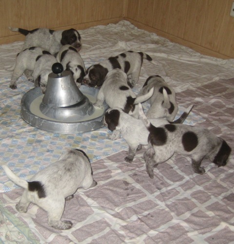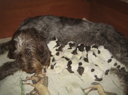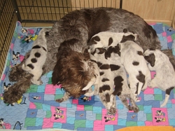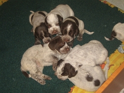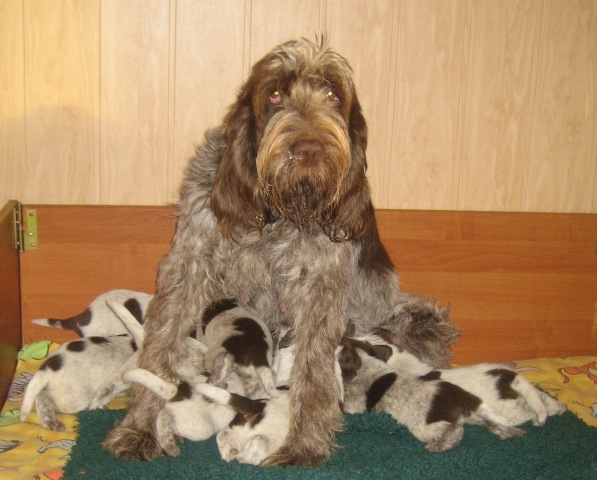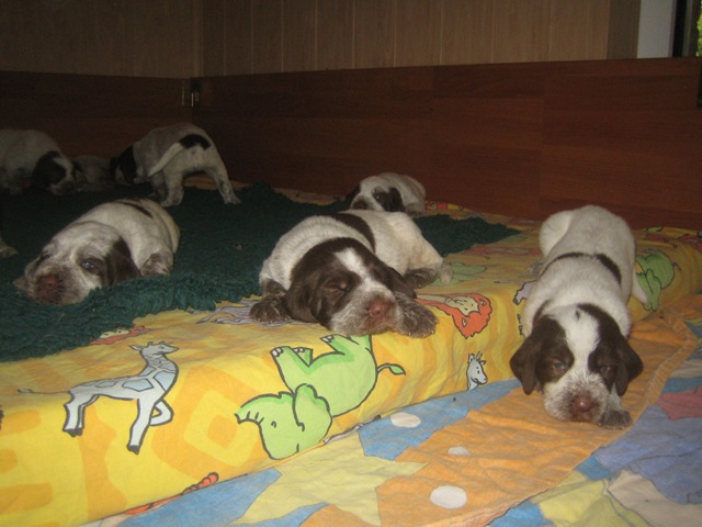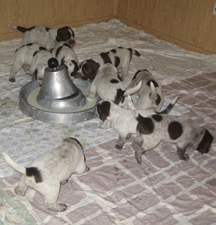 Pebbles mit ihren 9 braunschimmel Welpen, 4 Rüden und 5 Hündinnen