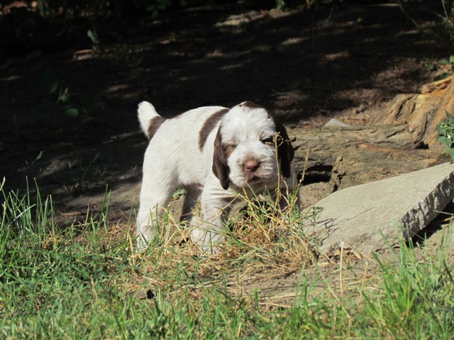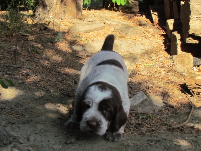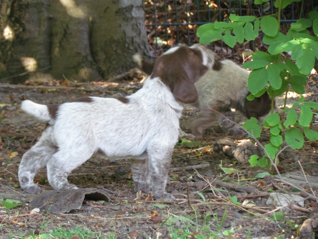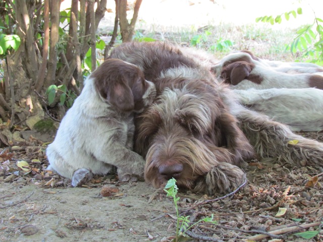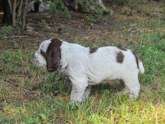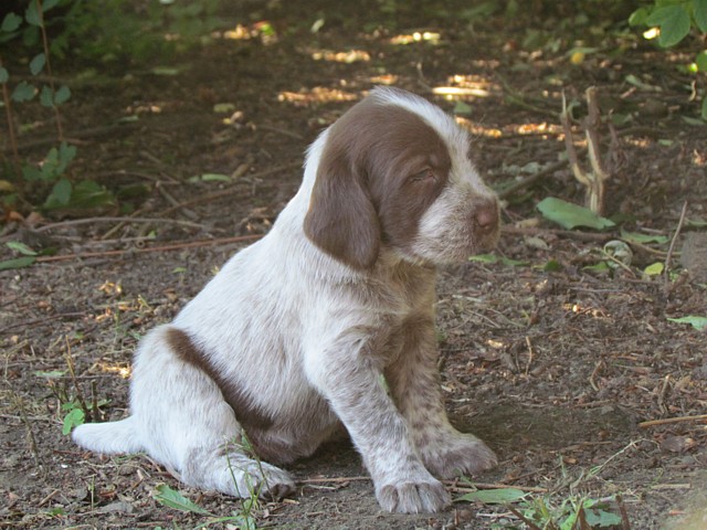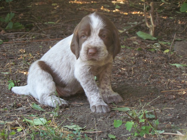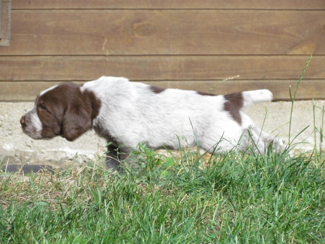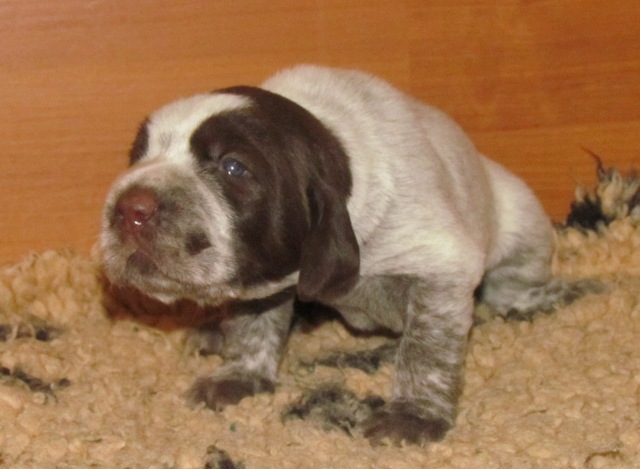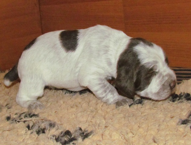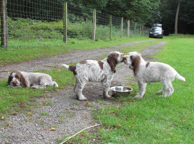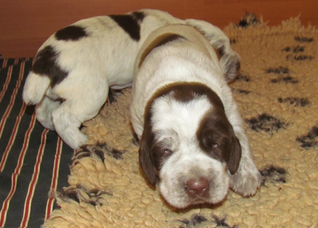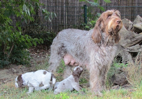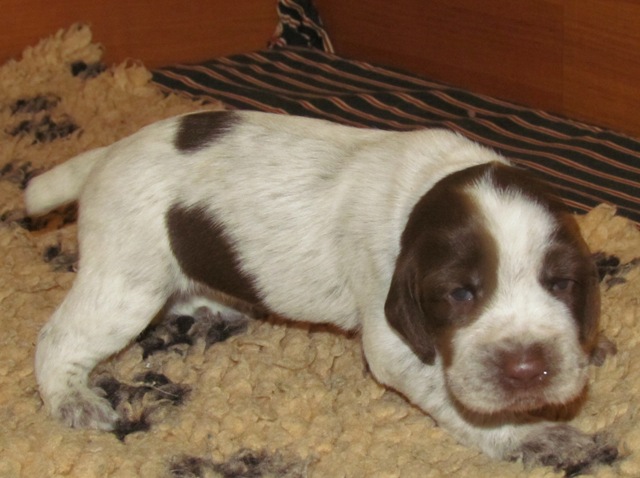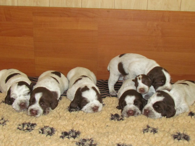Pebbles und ihre Welpen im Alter von 4 Wochen (28 Tagen).