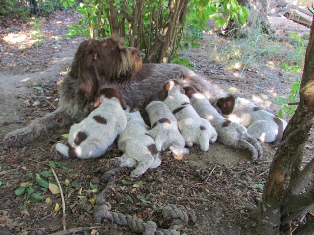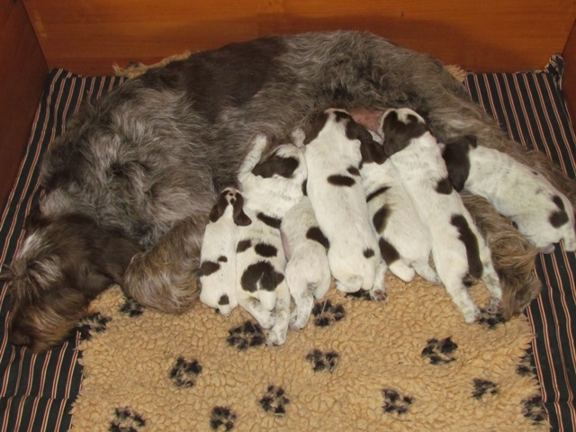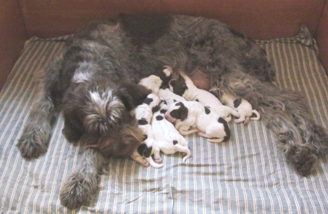 Pebbles mit ihren 7 Welpen kurz nach der Geburt