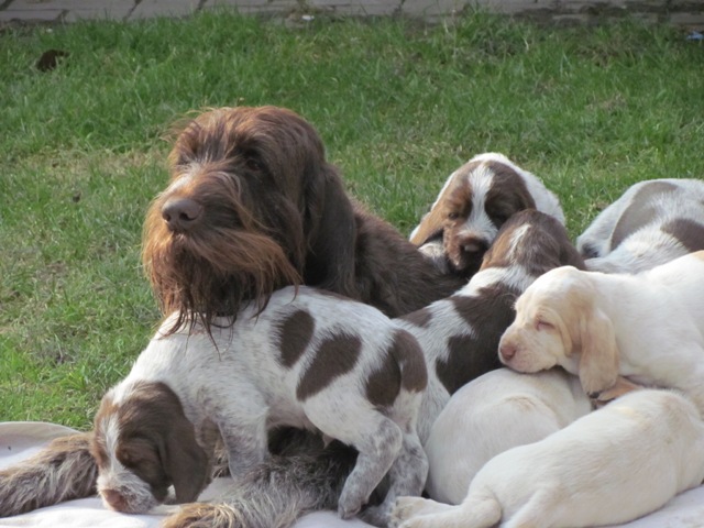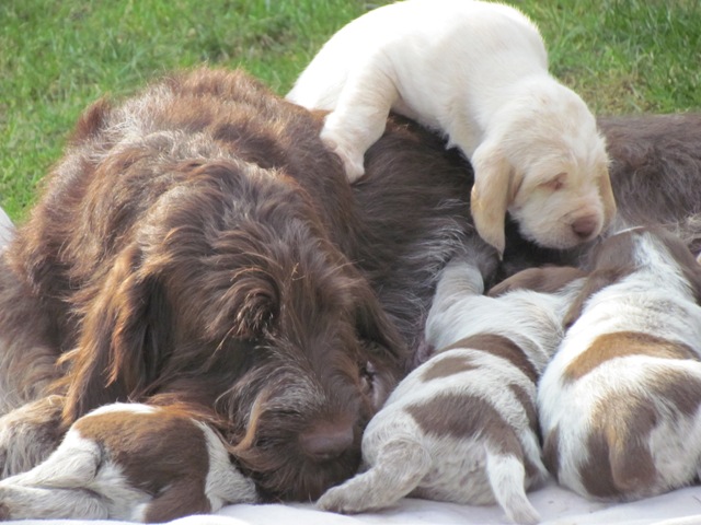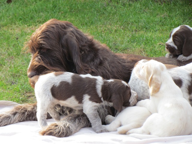 Mocca und ihre Welpen im Alter von 4 Wochen
