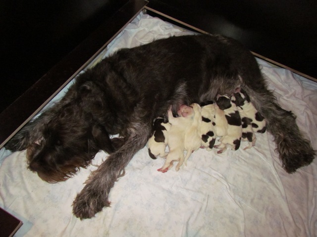 Mocca mit ihren 8 Welpen drei Tage nach der Geburt