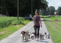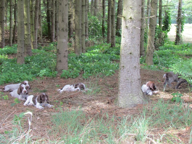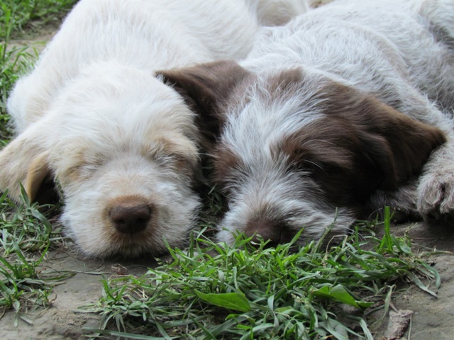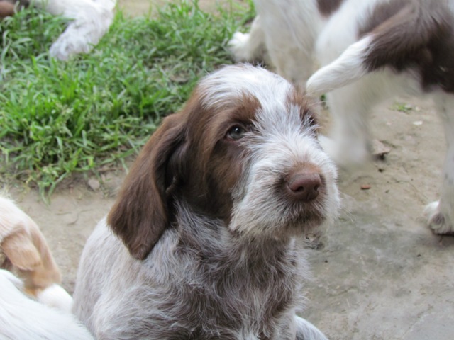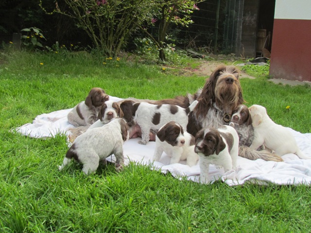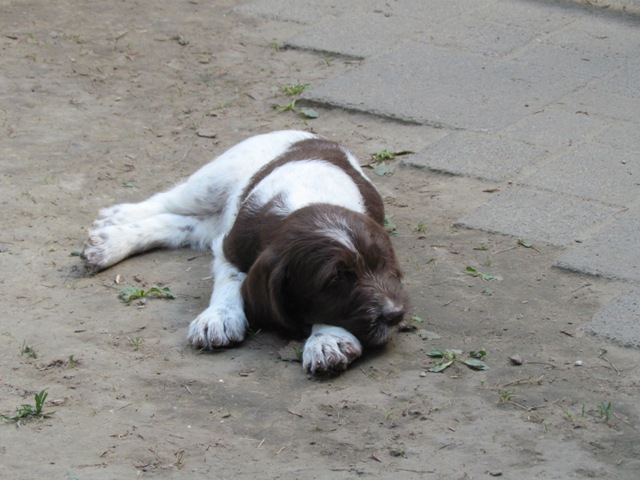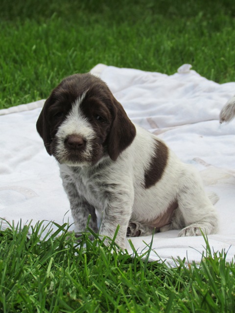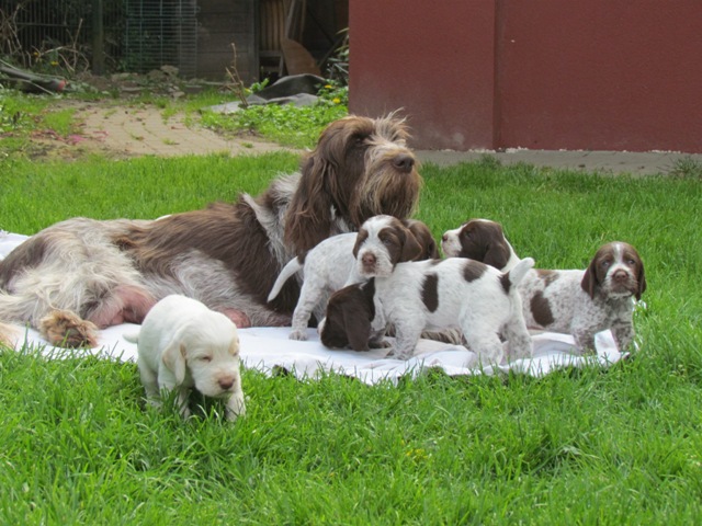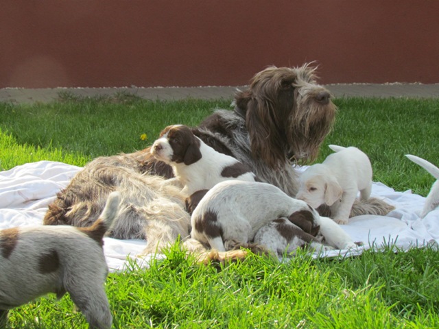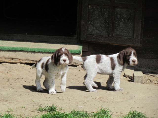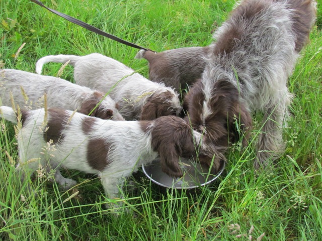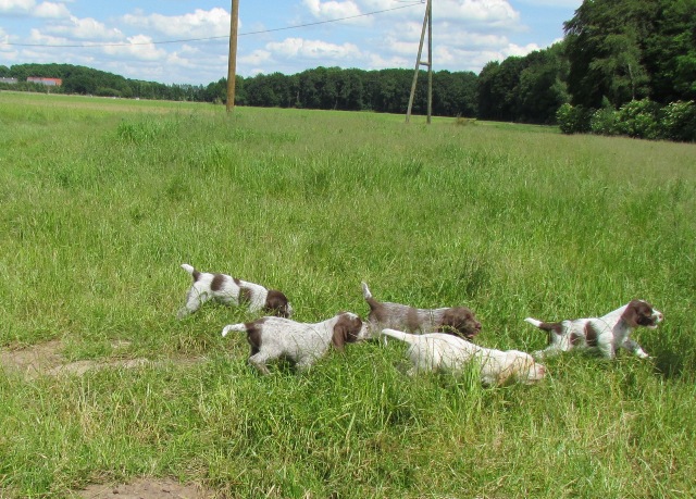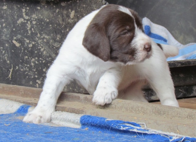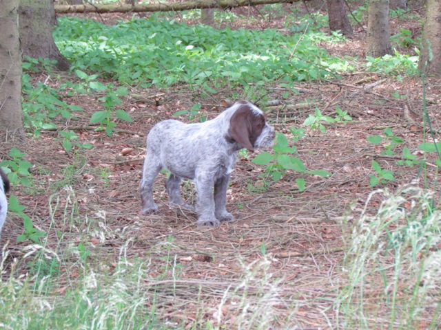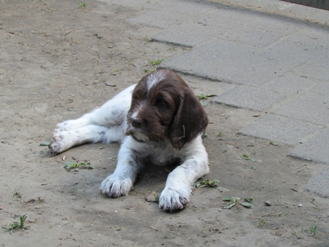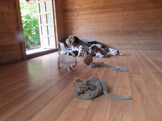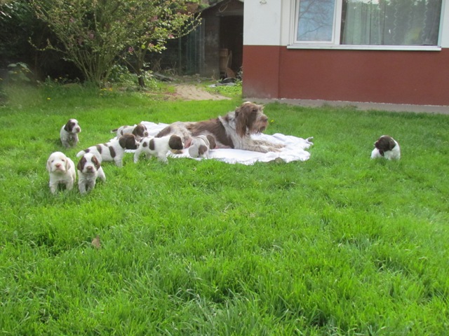 im Alter von 4 Wochen, erster Tag im Welpenhaus/Welpenauslauf